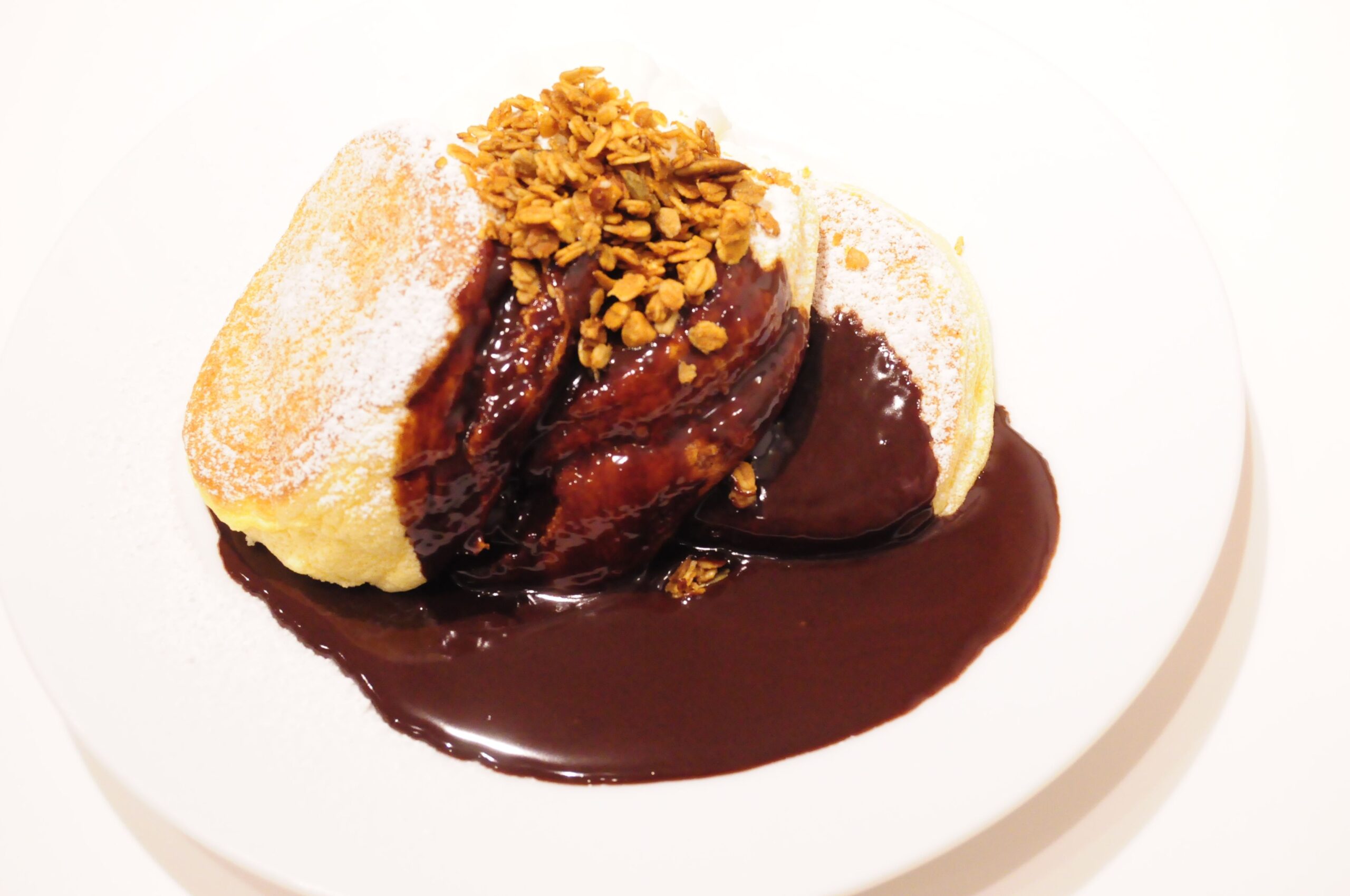 ふわふわ食感のパンケーキにホットチョコレートをとろーり。